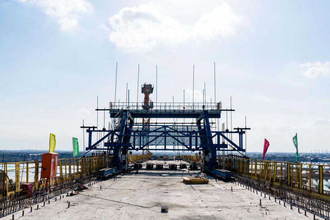为应对这些挑战,项目团队借助BIM+智慧工地管理平台、挂篮施工智能控制技术、挂篮悬臂端工装一体化施工作业平台等数字化技术,提升安全管理与质量管控要求。