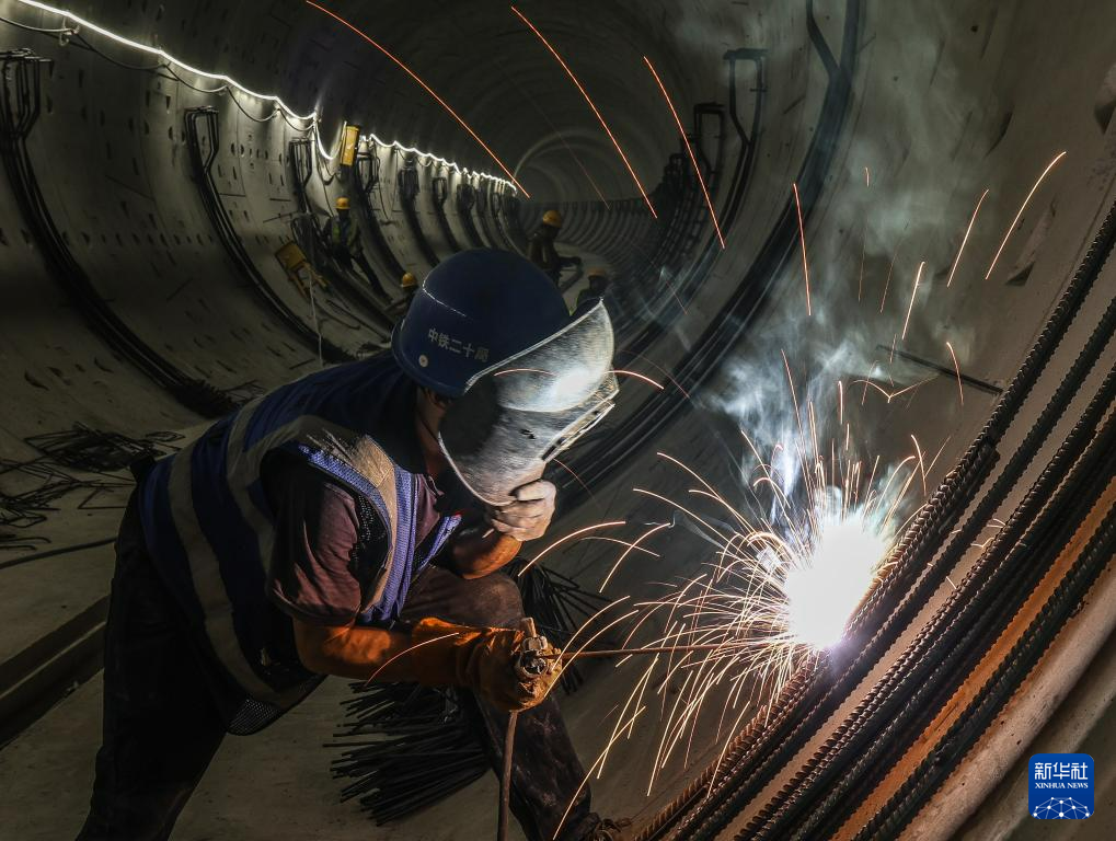 10月17日,建设者在深圳地铁16号线共建管廊进行焊接作业。